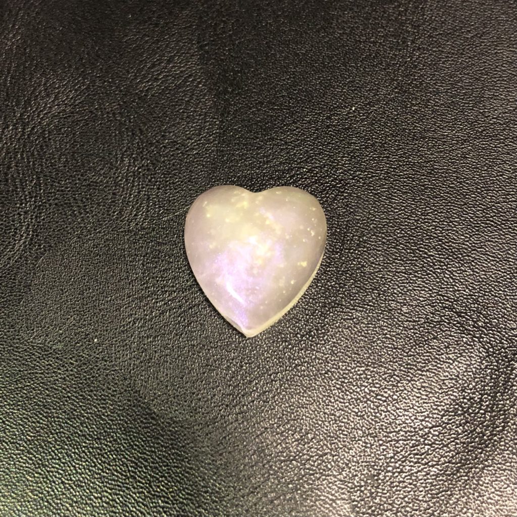 「妖精の羽 WG-26」をパジコのUVレジン「星の雫」に適量混ぜ込んで固めたもの。